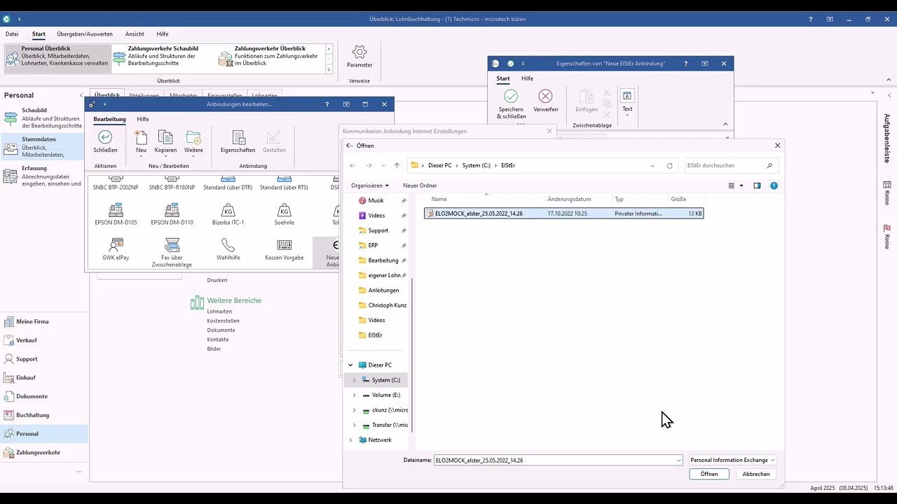 Wenn Sie daher ein neues ElStEr-Zertifikat über elster.de erhalten haben, dann ist dieses wieder neu im Programm anzubinden.