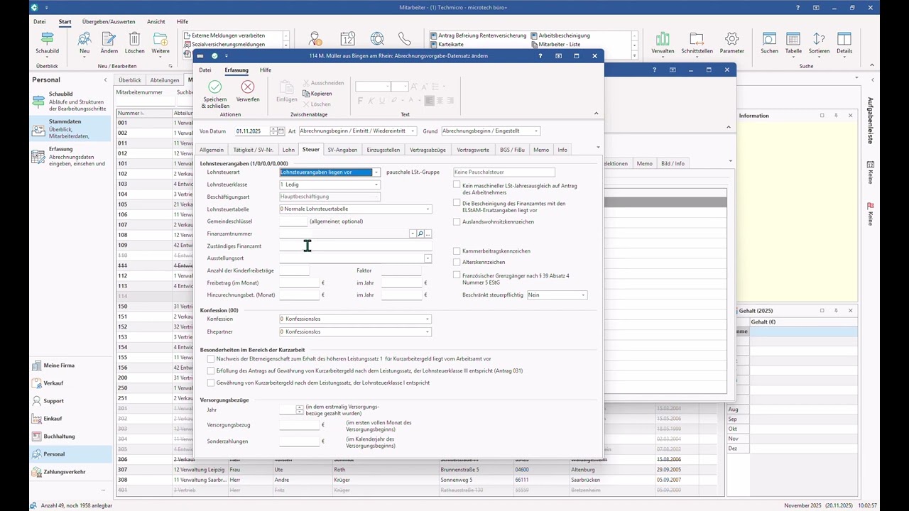 Mitarbeiter - Register: "Lohn-Abrechnungsdaten"