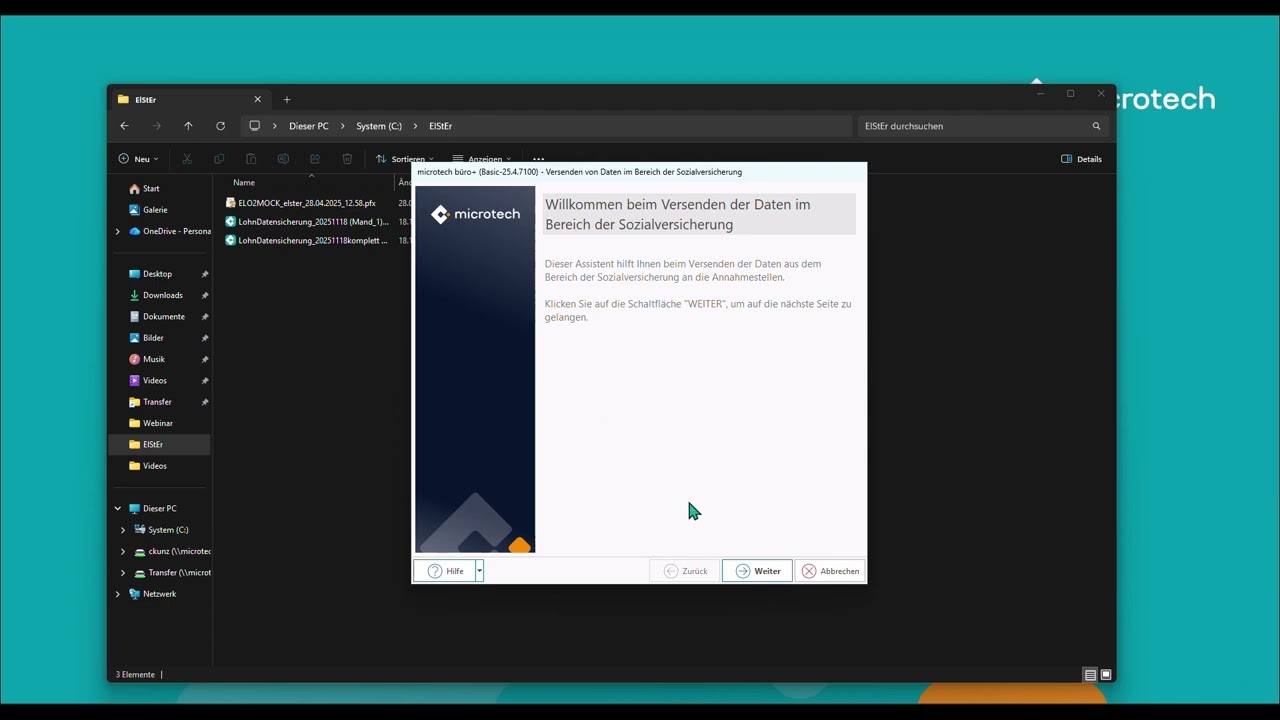 Haben Sie Ihre Auswahl zu Übertragung getroffen, dann folgen Sie über die Schaltfläche: WEITER den Anweisungen des Assistenten.